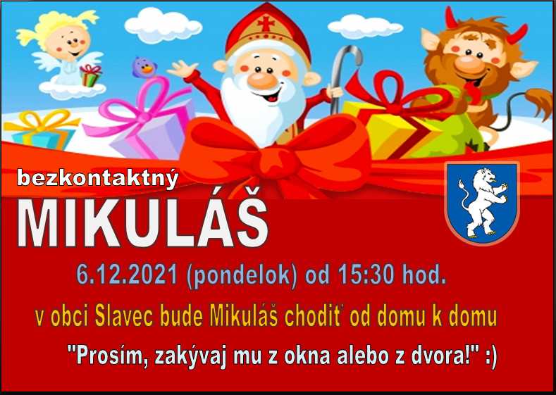 Bude chodiť od domu k domu, avšak aby sme dodržiavali všetky predpísané nariadenia, opatrenia vyzývame rodičov detí v obci Slavec a v miestnej časti Vidová, aby nepúšťali svoje deti k Mikulášovi a dodržiavali min. 2m odstup.