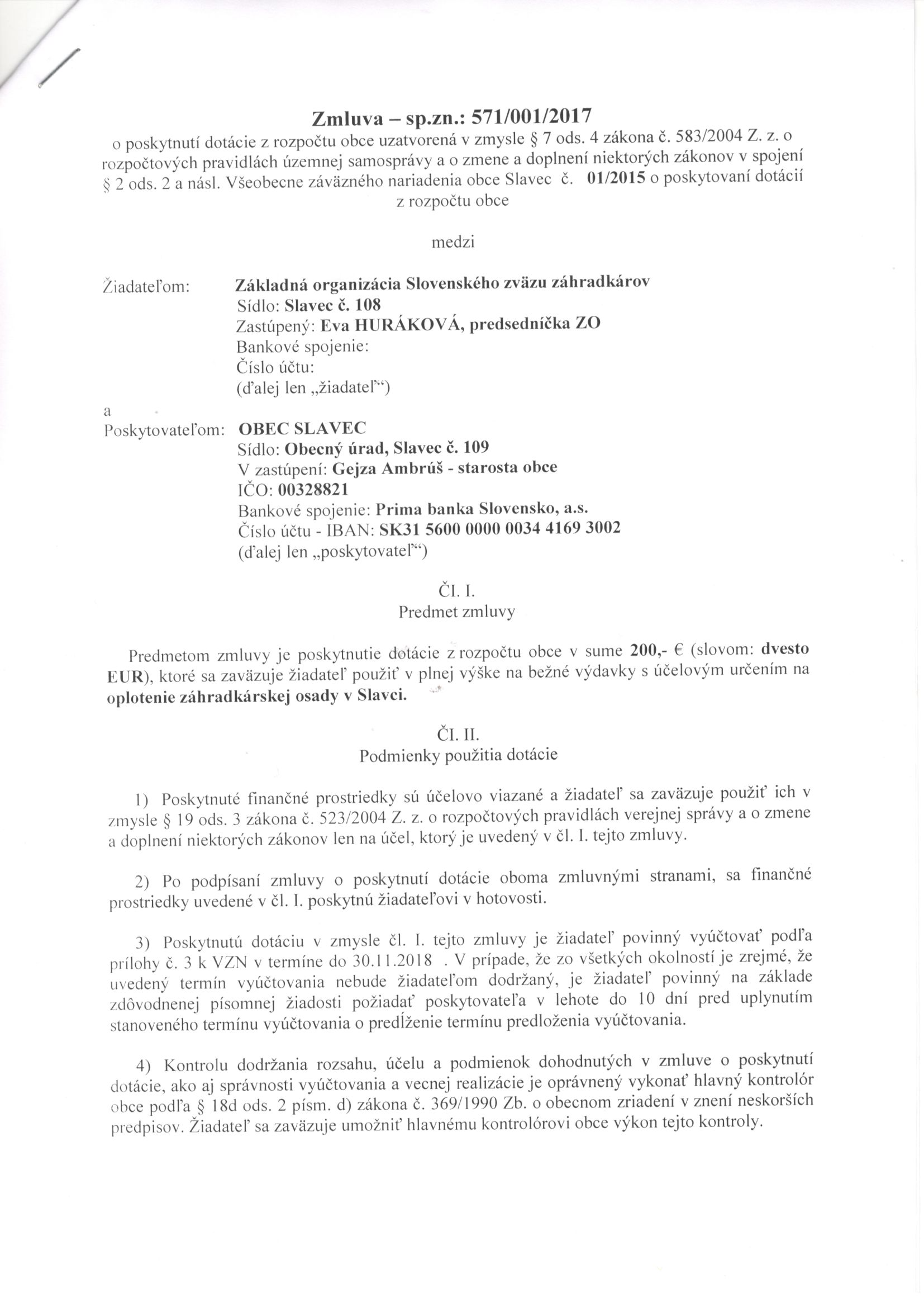 Zmluva o poskytnutí dotácii od obce pre ZO SZZ na r. 20180001.bmp